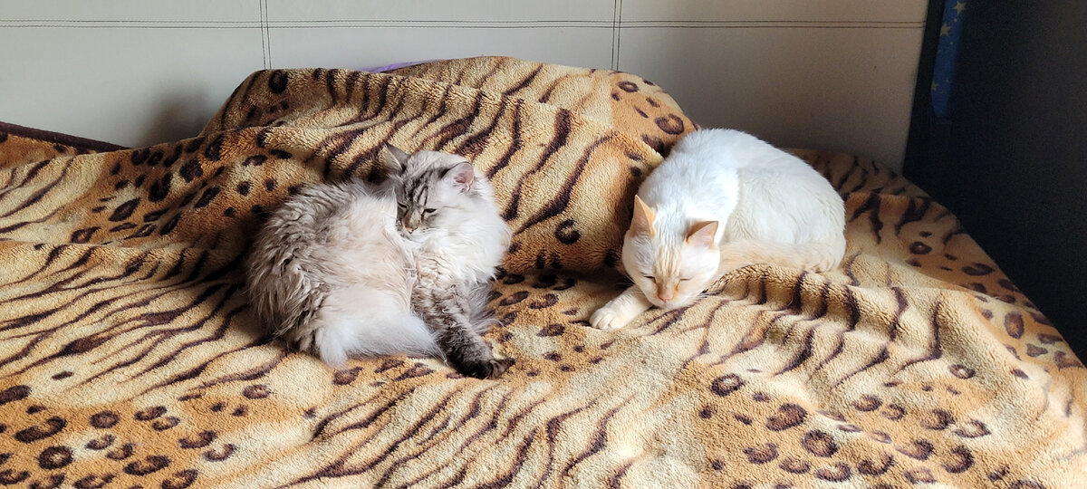 А видим мы что?! А видим мы, как коты (и кошка, между прочим) скрутились в большие пушистые фиги и усиленно их мне демонстрируют. А некоторые (Зёма) ещё и приходят ночью с требованием развлечь и полюбить.