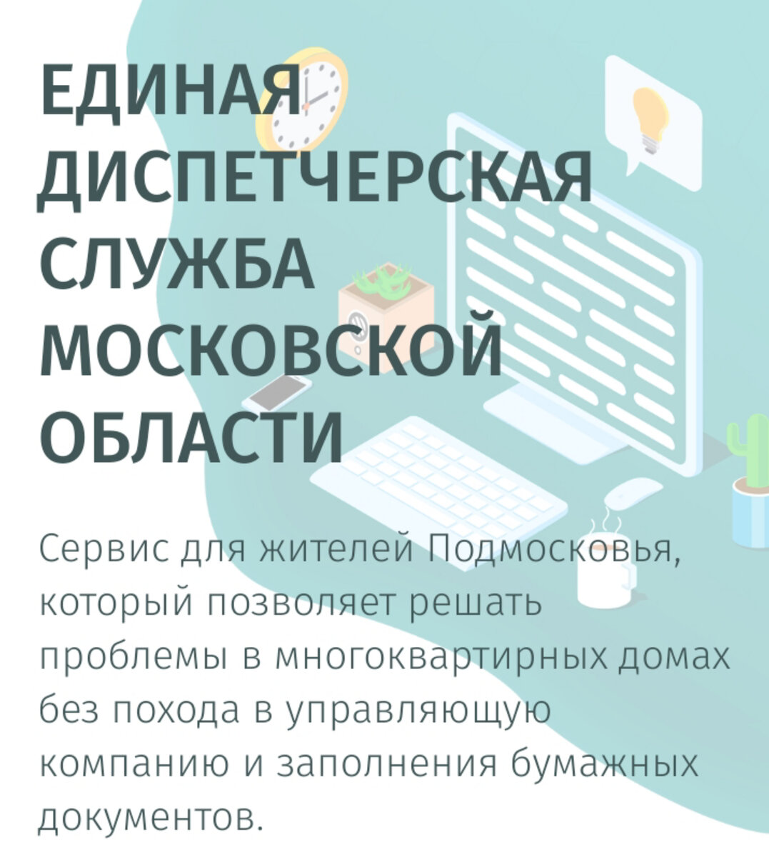 ЕДИНАЯ ДИСПЕТЧЕРСКАЯ СЛУЖБА МОСКОВСКОЙ ОБЛАСТИ Сервис для жителей Подмосковья, который позволяет решать проблемы в многоквартирных домах без похода в управляющую компанию и заполнения бумажных документов. Всем добрый день. Сегодня поговорим про службу ЕДС МО - это ваши заявки/ обращения в вашу или другую УК по различным проблемам. Вам необходимо пройти регистрацию или авторизоваться через предложенный вариант. Далее вам предлагают ввести адрес и выбрать УК. Далее выбрать вариант проблемы, написать текст, приложить фото и отправить - заявка сформирована. Автоматически указывается срок её исполнения. Это очень удобно,так как нет необходимости идти в вашу УК и писать заявление в 2 экземплярах ( один остаётся у вас с номером входящего). После вам придет ответ и вы либо подтверждаете, либо нет. Если срок превышен, то автоматически ваша заявка идёт или на сайт Добродел или в ГЖИ ( зависит от проблемы). На данный момент это очень удобно. Особенно в наше время - быстро, комфортно, можно