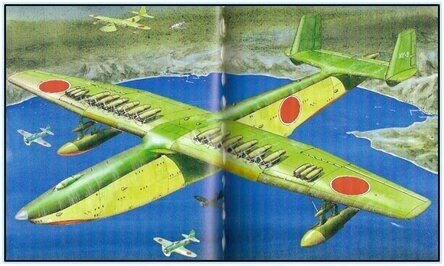 История: В начале 1943 когда по тех. отчёту кампании kawanishi (каваниси) №541 544 566, фирма вела теоретическое исследование огромной военно-транспортной летающей лодки (хотя мне кажется что это уже летающий корабль) с массой около 500 тонн, для быстрого перемещения большого количества войск в любую точку тихоокеанского региона, а также доставки большого количества грузов (боеприпасы, топливо и т.д.) для снабжения отдалённых (изолированных) гарнизонов. Двигатели: "Сердцем" этого "летающего корабля" должны были стать 12 турбовинтовых двигателей Ne-201 с суммарной мощностью в 6720 л.с. Давайте немного о них расскажу: В июле 1944-го года построили первый агрегат, а 26 октября этого же года состоялись испытания на предприятии Shibaura Turbine Co. Ltd., после испытания - осмотр, но ничего выявлено не было. Но ничего не бывает слишком гладко, и 20 декабря 1944 года произошел разрыв осевого компрессора при работе на 1500 об / мин. В апреле 1945 года осевой компрессор был отремонтирован и сн
