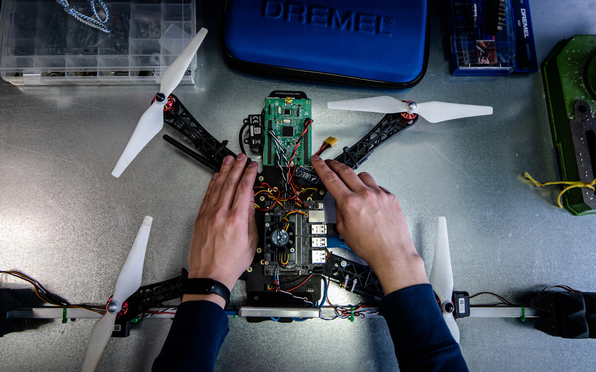 Плюс мы работаем на реальном промышленном оборудовании. Условия, в которых взлетает аппарат, отличаются от условий на воздухе. То есть промышленное оборудование в цехе может влиять на работоспособность аппарата, на датчики систем навигации. В ходе экспериментов приходится дорабатывать как оборудование, так и алгоритмы его работы.
