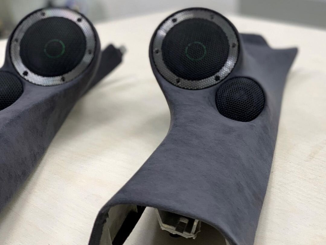 4. Перетянули стойки в алькантару цвета «антрацит». В комплекте динамиков уже были защитные грили, поэтому, в этот раз, делать их нам не пришлось. #автозвук #автозвукболезнь #автозвукекб #lexuses350 #soaudio #динамики #стойки #алькантара #перетяжкастоек #sq #soundquality #caraudio #autocslexuses350