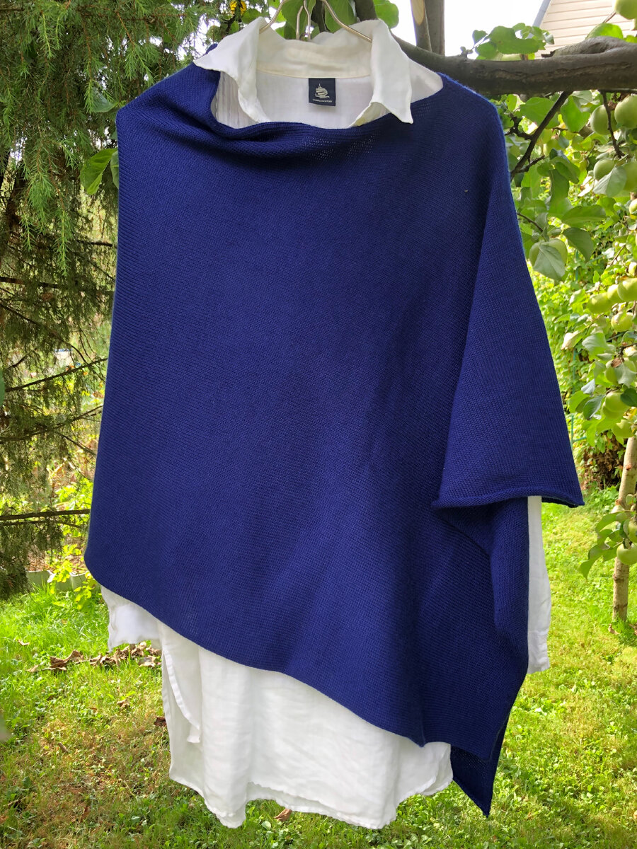Следующие два поста о пончо. Мы любим пончо за необычный внешний вид и удобство. Словно безразмерный свитер, пончо носим качестве повседневной одежды. Просторная вещь, не жмет, не стесняет движения и в которой тепло. Весной обновляем гардероб, без финансовых затрат - вяжем пончо. ШАРФ-НАКИДКА – пожалуй так будет точнее назвать это изделие, хотя можно и пончо. Пончо (накидку) свяжет даже новичок в вязании, потому что вяжется проще некуда, на лице-лицевыми петлями, на изнанке-изнаночными, единым полотном, по прямой , без убавлений и прибавок, как шарф. Итак, вяжем шарф шириной 85 см, длиной 150см. Складываем и сшиваем: по длинной стороне 39 см, оставляем для горла средние 36см. Размеры меняем в зависимости от роста и размера. У меня готов универсальный размер. Дополнение, одну сторону, где нет шва закрывала I-cord и на противоположной стороне 72 см, соответсвующие вырезу горловины тоже закрывала i-cord. ◾️Полотно вязала на машине 5 класса. ◾️пряжа из старых запасов, во