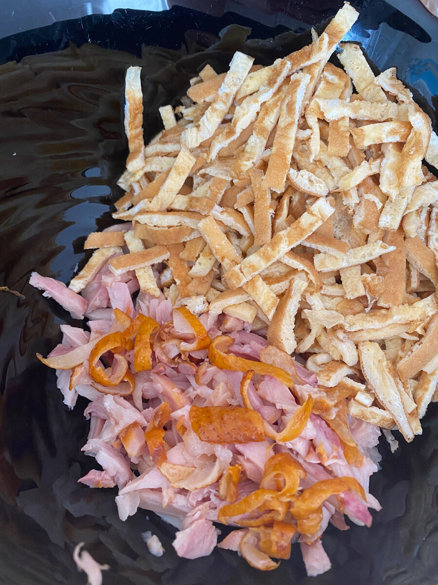 друзья всем привет! Хочу поделиться рецептом не сложного, но очень вкусного, салата . копченый окорочок режем соломкой и жарим яичные блины (из 5 яиц) и так же соломкой. Шампиньоны нарезаем произвольно и жарим с луком(полукольцами). добавляем соленые огурчики(соломкой) Все перемешиваем, солим по вкусу. добавляем майонез и довольствуемся изумительным салатиком !😀