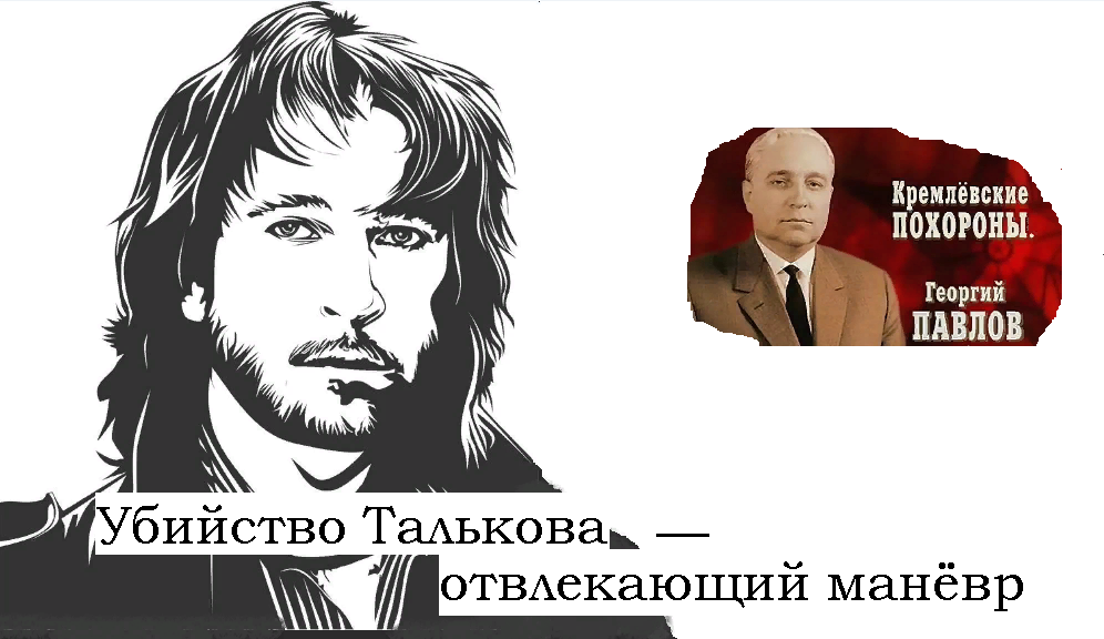 Но в данном случае это было не совпадение.С Павловым произошёл не несчастный случай и не самоубийство. Его убили. Сбросили с балкона. А убийство Талькова — это отвлекающий манёвр! Отвлекающий от убийства Павлова. Чтобы никто не обратил особого внимания на убийство Павлова, решили совершить громкое убийство какого-нибудь всем известного и всеми уважаемого человека. Талькова в данном случае. Вот почему убили его не в тёмном переулке, не в квартире, не в подъезде, а при массе свидетелей, во время грандиозного концерта в зале "Юбилейный"! Чтоб как можно громче прозвучало это убийство! Убийцы всё точно рассчитали!И действительно, кто обратил особое внимание на падение с балкона никому неизвестного партаппаратчика Павлова? На фоне убийства кумира публики Талькова смерть Павлова выглядела совершенно незаметно...И вот теперь вопрос возникает: а кому и зачем понадобилось убивать Павлова, да ещё при этом отвлекающий манёвр организовать — убить Талькова? А ответ уже понятен без долгих объяснений. Этот Павлов был управделами ЦК КПСС. Проще говоря, он заведовал финансами КПСС. А если ещё проще сказать, то это будет звучать так: он заведовал "золотом партии". Тогда понятно, кто и зачем его убил. Его убили похитители "золота партии". Убили, чтобы замести следы похищения. И Талькова, значит, убили эти похитители "золота партии". И убили не с целью заметания следов, а с целью отвлекающего манёвра. Чтобы отвлечь внимание общества от убийства Павлова. Вот так просто объясняется убийство Талькова.