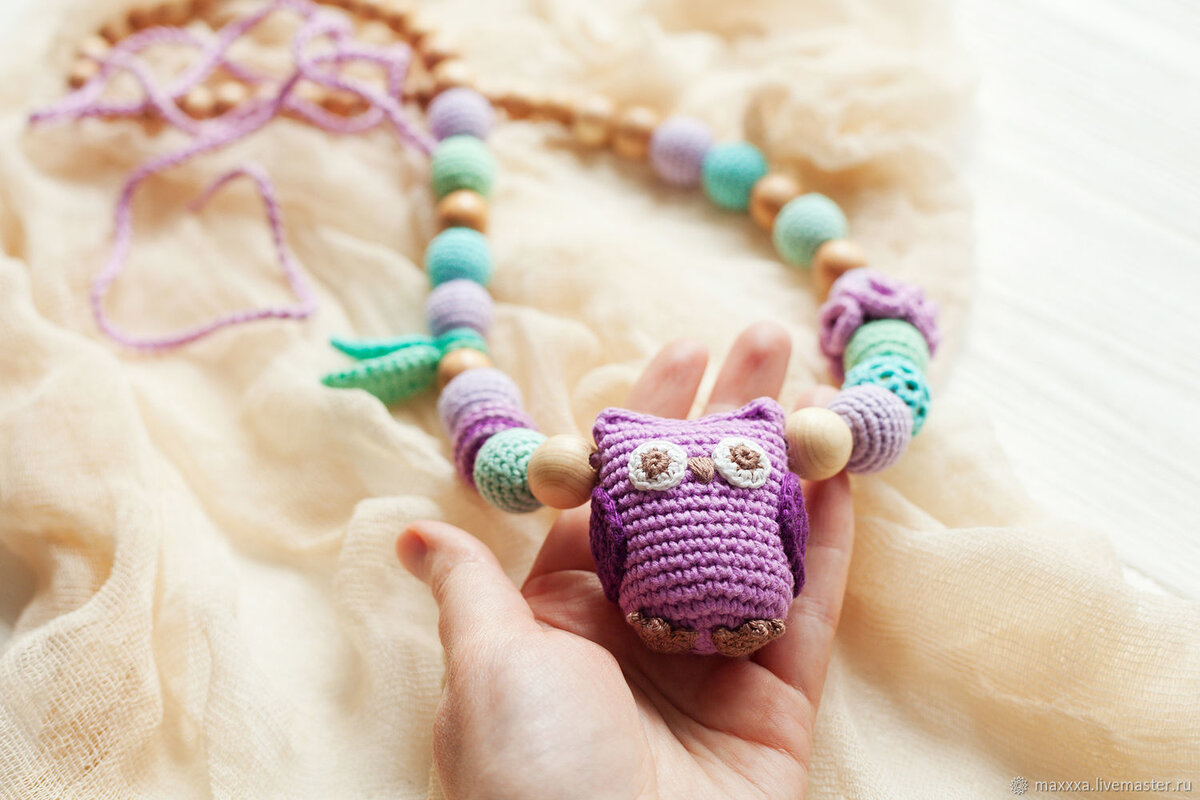 Этот аксессуар будет полезен не только для ребенка, но и для вас. Слингобусы занимают малыша, пока тот находится у вас на руках или в слинге. Бусины различных размеров, форм и текстур развивают мелкую моторику.