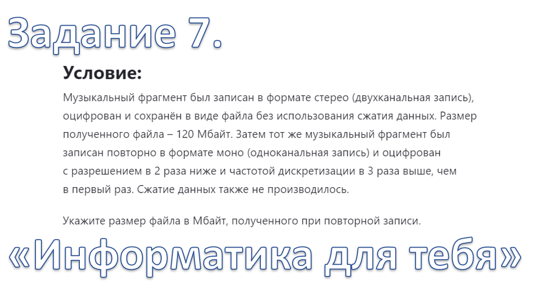 Задание 7. ЕГЭ по информатике. Кодирование и декодирование информации. Передача информации. Звуковой файл.