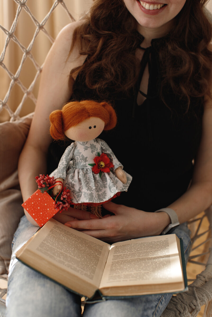 Не зря их так называют. Интерьерные куколки предназначены для украшения дома, для создания определенного стиля, для подчеркивания индивидуальности как человека, так и дома. Она занимает почетное место и радует глаз хозяйки (хозяина) и ее (его) гостей. Но зачастую куколка попадает в руки к маленькому ребёнку, а что же дальше? А дальше последствия могут быть страшными 😂 Конечно, есть куколки со съемной одеждой, но вы должны понимать, что с куколкой играть можно, но деткам постарше. Прежде всего аккуратность и нежность должны окружать интерьерные куклу, ведь если она попадёт в руки двухлетнему ребёнку, то страшно представить, что может от неё остаться 😂 Ручная работа включает себя не только шитье на машинке, а также пришивание различных деталей и элементов вручную ☝️То есть при применении силы (а у маленьких деток ее достаточно 🙈), можно порвать или оторвать что-то 🙃 Поэтому однозначно могу сказать, что интерьерная куколка должна стоять на полочке и радовать хозяйку, либо может бы