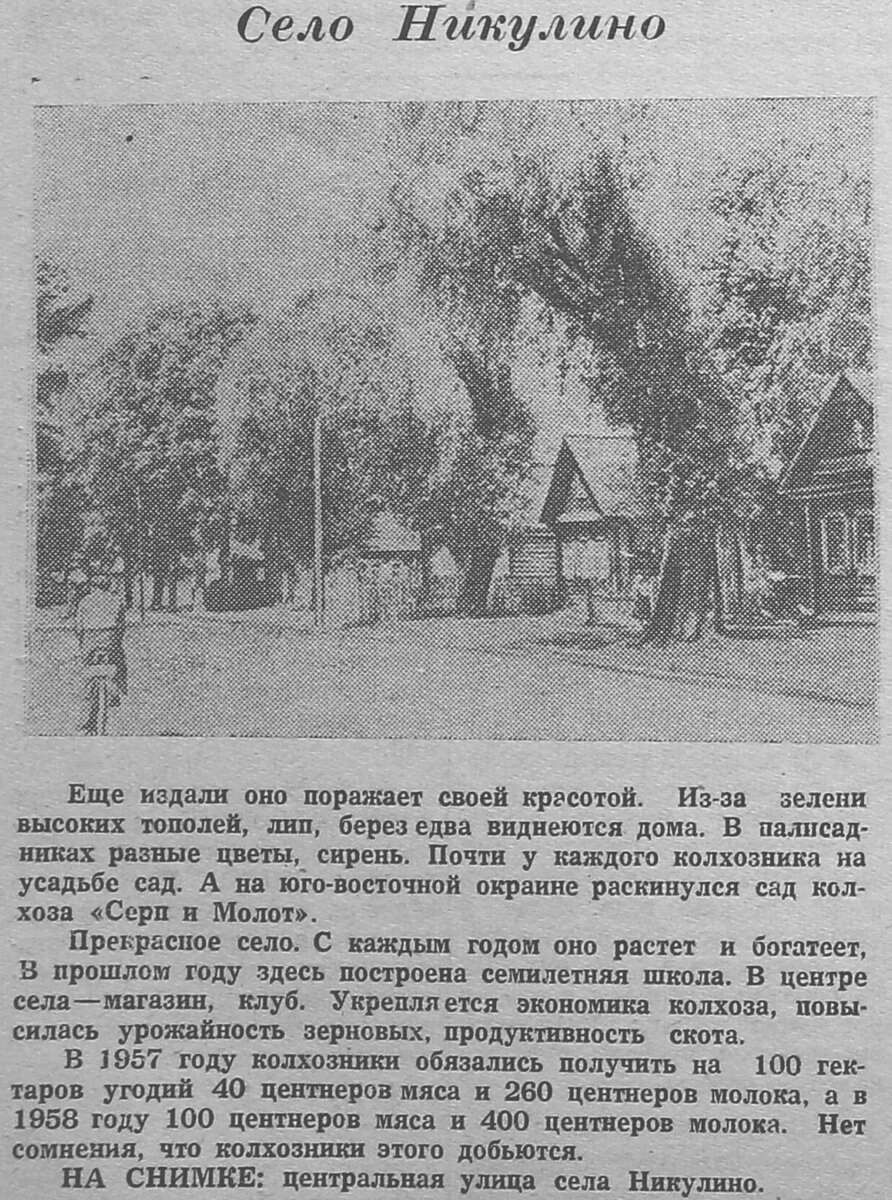 … Никулино — обыкновенная среднерусская деревня. Расскажу о том, как жили тамошние крестьяне до советской власти, посвятил свою беседу с избирателями председатель колхоза Иван Андреевич Грачев.
