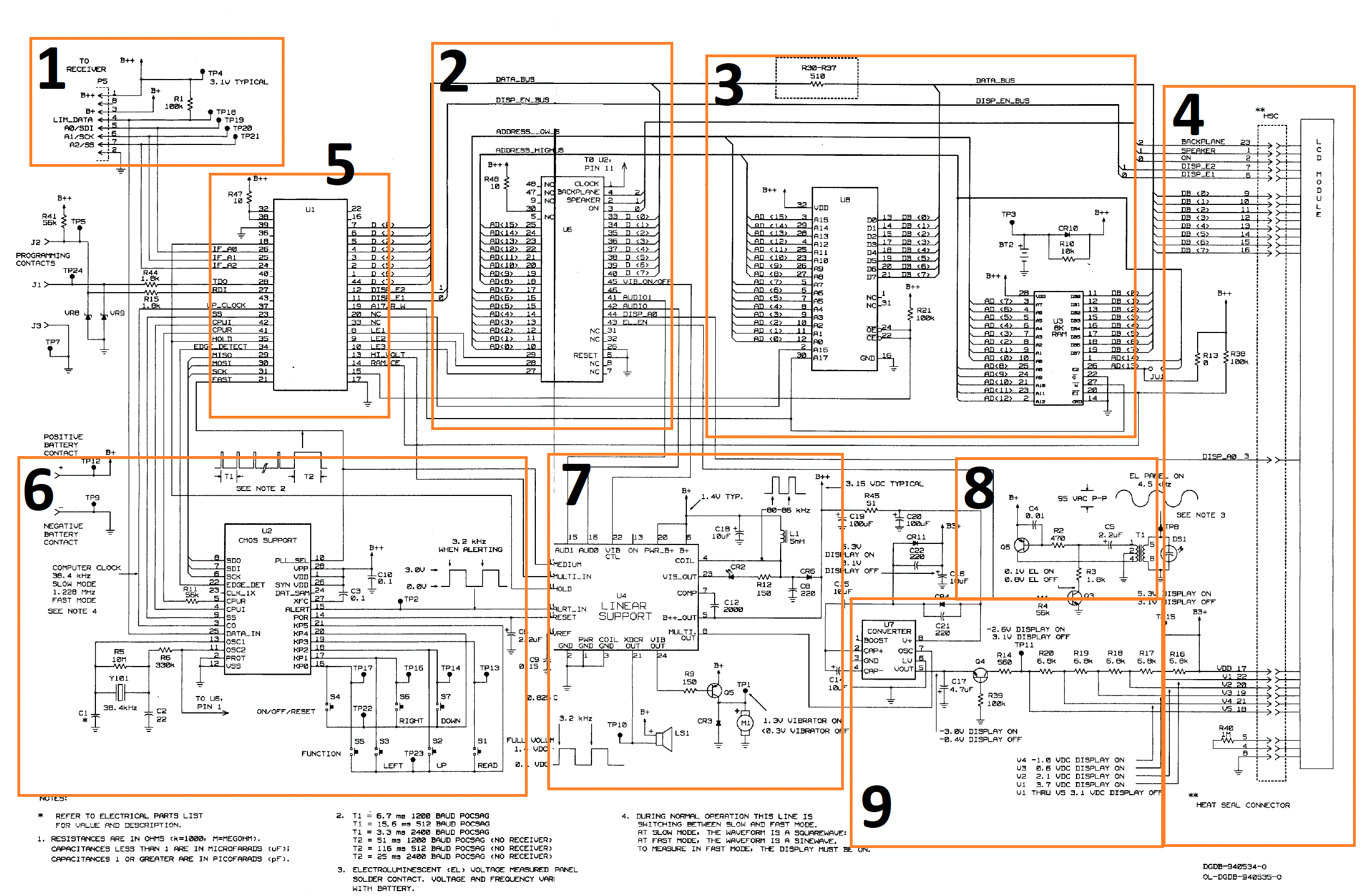 2. Странная микросхема. Что-то специализированное. Подключается к процессору на шину данных, имеет выход, который подключается к памяти. По сути, это контроллер управления памятью, но на него довесили управление тремя символами на дисплее. Очень странно... А еще с нее идет выход на динамик, вибрацию. Эдакий цифровой помощник для процессора. Управление подсветкой идет, кстати, тоже с него.