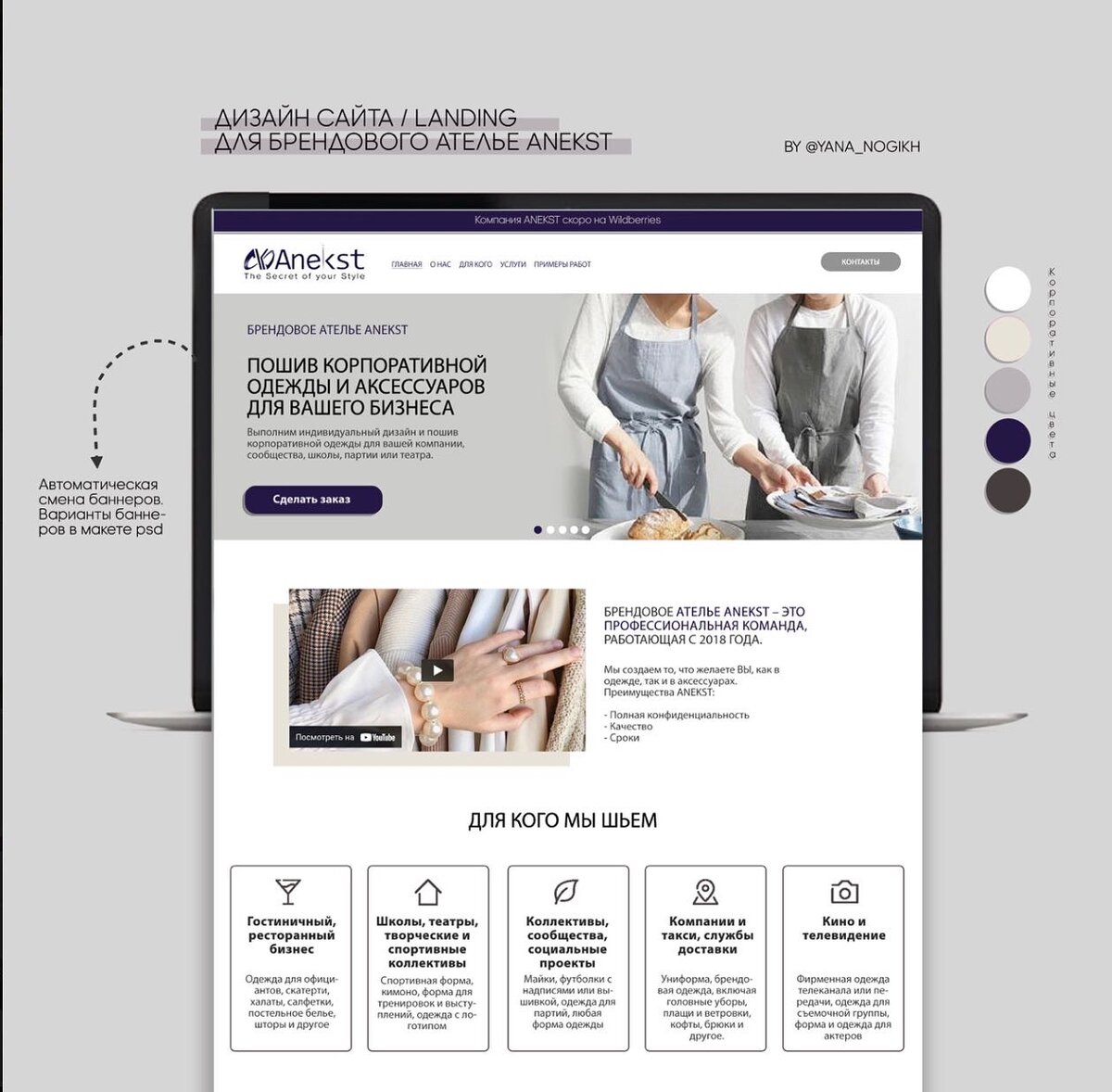 Дизайн сайта для брендового Ателье в Москве. Очень сложный заказчик, но работой остался очень доволен. Пошёл верстать сайт на Wordpress самостоятельно. (Возможен и такой вариант сотрудничества) Моя студия берет в работу верстку на Wordpress ИСКЛЮЧИТЕЛЬНО сложных проектов, цена которых начинается от 250 000₽ : это собственные платформы, новостные и политические порталы, большие интернет-магазины, Сайты для ЖКХ и прочее, где нужен личный кабинет, система оплат, сложная структура сайта и взаимодействие страниц. Если ваш сайт одностраничный или имеет до 20-30 страниц - приходите верстать его в Тильду. Я вам с радостью в этом помогу, стоить такая верстка будет от 18000, вместе с дизайном под ключ. (Цена уточняется после ознакомления с ТЗ) Когда вы выбираете специалиста для вашей будущей работы - постарайтесь довериться ему и четко формировать ТЗ, тогда работа будет в удовольствие и вам и заказчику. А главное, каждый получит необходимый результат. ——————————————————— P.S. Друзья, е