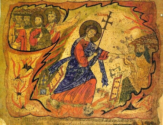 Иконы Воскресения Христова часто представляют нам схождение Его в ад. Дьявол, давно наблюдавший чудеса Господа, готовился уже ликовать: все ветхозаветные праведники, не имея возможности войти в Рай до совершения Голгофской Жертвы, пребывали у него в плену. Но вот входит в ад Создатель мира... Иконы Воскресения Христова часто представляют нам схождение Его в ад. Дьявол, давно наблюдавший чудеса Господа, готовился уже ликовать: он почитал Христа одним из пророков и святых, а все ветхозаветные праведники, не имея возможности войти в Рай до совершения Голгофской Жертвы, пребывали у него в плену. Но вот входит в ад Создатель мира – и для лукавого наступает время страшного прозрения. На пасхальной службе мы услышим: «Смерть, где твое жало? Ад, где твоя победа?» – потому что Христос освободил Адама от тяжести первородного греха, вывел из ада всех, кто ждал явления Мессии. Врата ада сокрушены силой Распятого Бога. Тот, Кого не может вместить небо, сначала вошел в утробу Богоматери, теперь же с