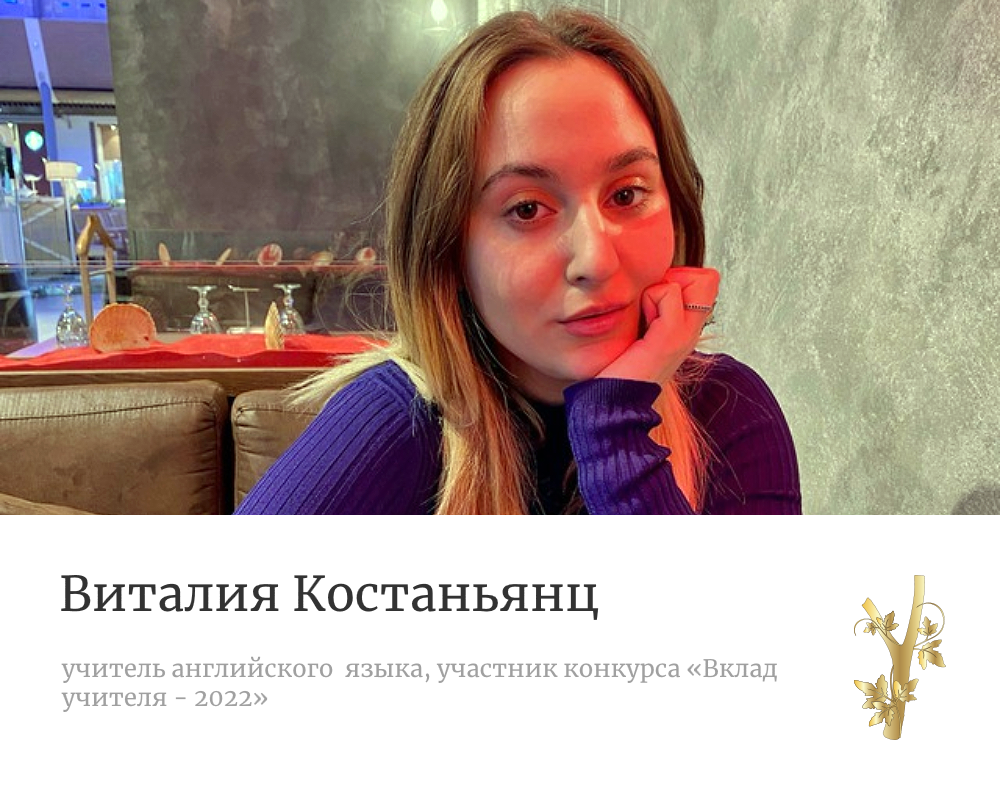 У всех участников Всероссийского конкурса учителей частных школ «Вклад учителя – 2022» остался на память как минимум один подарок, сделанный своими руками. Что это за подарок рассказала Виталия Костаньянц, учитель английского языка из Москвы. 🔻 «Благодаря конкурсным испытаниям вышла из зоны комфорта, стала развивать креативности. А ещё у меня осталось трогательное видео на память. Разработанный сценарий скорее всего буду реализовывать. Это Квест «Фото игнлиш квест» (Photo English quest) для учащихся 5-10 классов. Цель квеста – улучшение социального взаимодействия между учениками и выработка практических умений использования знаний иностранного языка, полученных в ходе образовательного процесса. Новых связей в сообществе у меня не появилось, а «болеть» буду за коллег из своей школы Ольгу Бойко, Владимира Данькова, Вячеслава Крутихина, Снежану Ангарову.»
