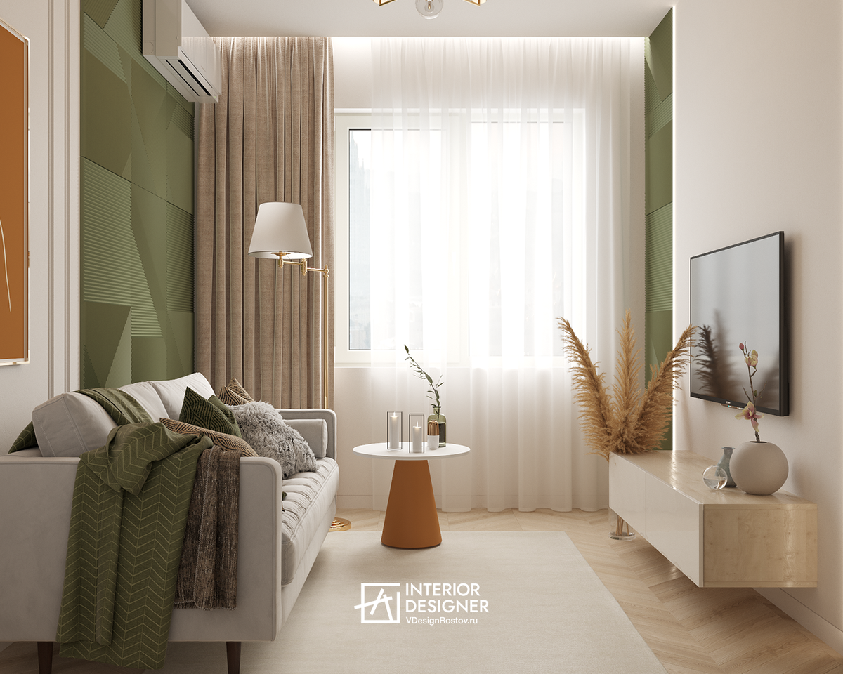 Она не выбивается из общей стилистики квартиры. Здесь все продолжает ее дизайн-историю. О гостях подумали заранее и создали для них максимально комфортные условия. Уютное и светлое пространство воздушно. Интерьер элегантен и утончен, но впитал в себя трендовые решения. Землистая цветовая гамма, обилие холодного бежевого, яркие детали, рельефная отделка, игра текстур и форм – при этом все минималистично. Хотите нечто подобное, но отражающее ваш образ жизни?