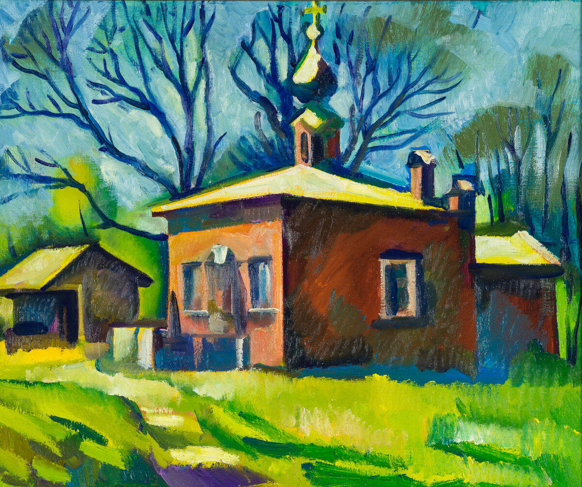🔳 В.А.Урсакий, «Храм в усадьбе Мураново», 2013. Холст, масло. «Ну, вы сразу должны вдохновиться и сразу написать...» Неповторимый взгляд мастера пейзажа Владимира Урсакия отражает живописная работа «Храм в усадьбе Мураново». Художник ставил превыше всего работу на пленэре, много рисовал с натуры. Он отмечал, что в живописи есть разные методы изображения, а сам он был страстно увлечен именно краевым контрастом. С невероятной теплотой он воспел маленькую усадебную церковь, которая стала героиней его полотна в 2013 году. Энергия картины сразу наполняет нас цветом и светом, гармонией, красотой и безмятежностью. #поэзиямурановскихпейзажей Владимир Урсакий (1954 - 2020), член Пушкинского отделения Союза Художников Подмосковья, руководитель творческой группы «КОНТРАСТ».