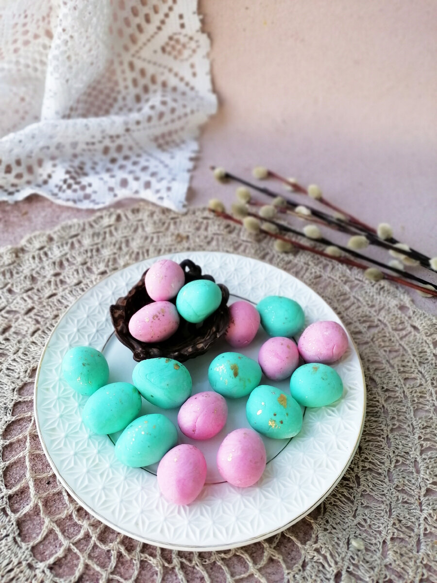 Яйца на куличи из маршмеллоу. ⠀ Очень красиво яйца дополняют декор кулича. Их можно просто положить на куличик или дополнительно сделать гнездо из шоколада. ⠀ Сделать вот такие красивые яйца очень легко. ⠀ На нужны: - Маршмеллоу 50 гр - Сливочное масло 10 гр - Сахарная пудра 110 грамм - Пищевой краситель или какао. ⠀ Кладем в чашу маршмеллоу и масло, ставим в микроволновку на 1 минуту на максимальную скорость или растапливаем на водяной бане. ⠀ После добавляем сахарную пудру и замешиваем пластичную массу. ⠀ Делим на 2-3 части и добавляем нужный пищевой краситель. ⠀ Можно просто белые яйца припудрить какао. Затем немного какао развести водой, будет как краска и побрызгать кистью на яйца. И у вас получатся перепелиные яйца. Красивых вам куличей! #яйца на куличи #декор для куличей #яйца из маршмеллоу