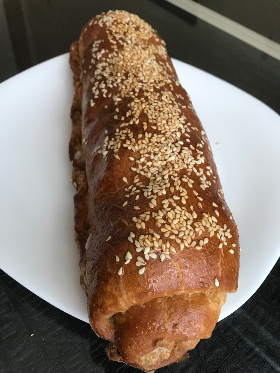 📝 РУЛЕТ МОЖНО НА ОБЕД 😋 📍тесто 200гр 📍рис отварной 100гр 📍мясной фарш 200гр 📍2 яйца 🥚 отварных 📍майонез 70гр 📍кунжут На раскатанный пласт теста наносим майонез, затем слоями выкладываем фарш, рис 🍚, яйца. Заворачиваем рулетом. Сверху посыпаем кунжутом. Выпекаем при t 200 гр 30 мин! Приятного аппетита!!