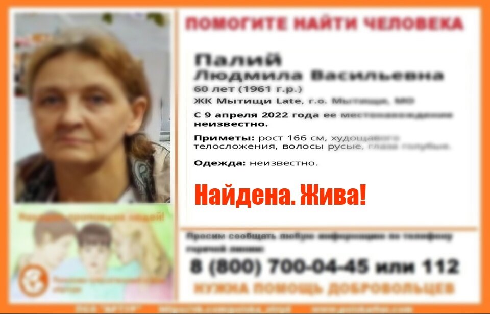 Внимание! Помогите найти человека! Пропала #Палий Людмила Васильевна, 60 лет, ЖК Мытищи Late, г.о. #Мытищи, МО С 9 апреля 2022 года ее местонахождение неизвестно.