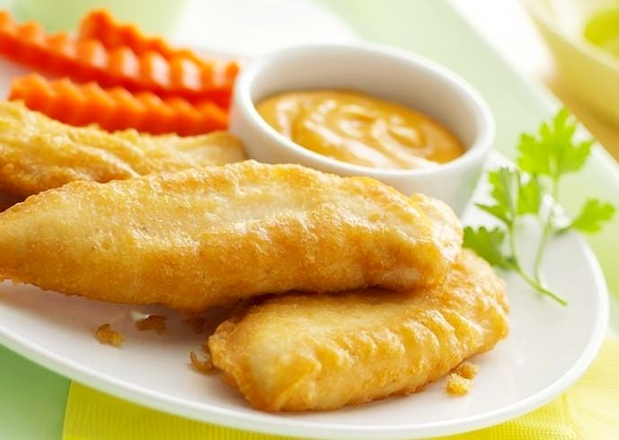 - Обмакиваем каждый кусочек в получившемся кляре и выкладываем на сковороду.