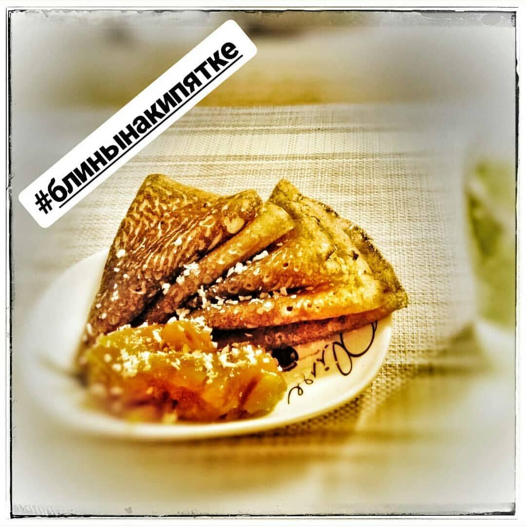 🔹2 яйца 🔹2 ст.л сахара 🔹0.5 ч. л соли 🔹500 мл молока 🔹4 ст. л. с горкой цельнозерновой муки 🔹4 ст. л. с горкой пшеничной муки Все смешать венчиком или блендером. Затем добавить 🔹200 мл кипятка 🔹3 ст. л растительного масла Тесто будет жидкое, но муку добавлять не следует. Дать постоять минут 10 и выпекать на разогретой сковороде. Я свою смазываю маслом только перед первым блином. Блинчики тонкие, не рвутся, подходят и для фарширования и просто со сметаной или как на фото, с яблочным вареньем😛 👉 Ещё больше рецептов по хэштегу #рецептыNadyn #блины рецепт #блины на молоке #блины на кипятке #рецепты блинов #блинчики рецепт #блины с цельнозерновой мукой #рецепт блинов