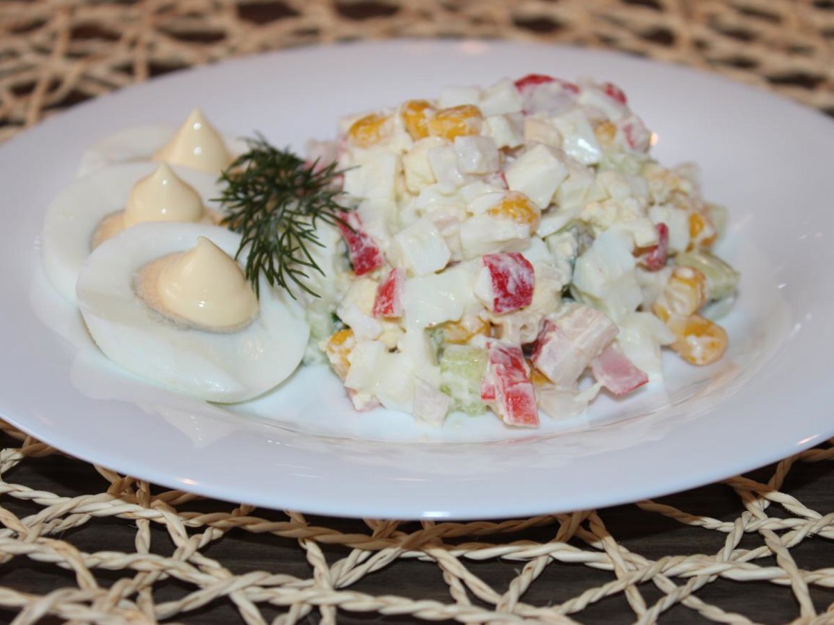 Крабовые палочки в нашей стране очень популярны, хотя в их составе отсутствует краб. Но это все равно не делает салат менее любимым среди россиян!