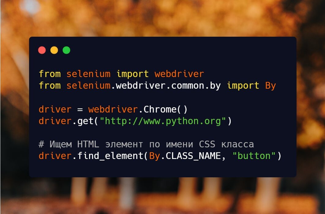 Функционал библиотеки необходим для работы с браузером. В тестировании она является одной из самых популярных. При выполнении кода с картинки откроется браузер Chrome и перейдет на сайт python.org, а также выберет первый html-элемент с классом button. Возможности библиотеки: 1. Автоматизация работы браузера. 2. Парсинг сайтов, нажатия на кнопки. 3. Эмуляция различных действий пользователя. 4. Отправка GET/POST запросов. Документация доступна по ссылке.