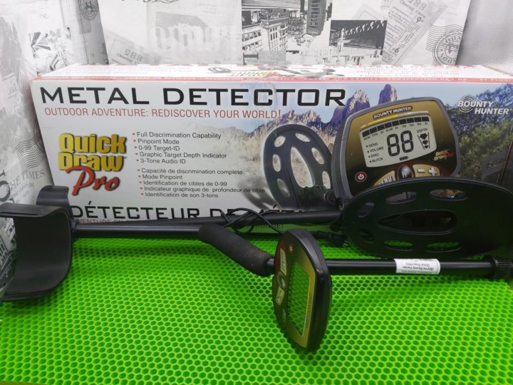 Bounty Hunter Quick Draw Pro является средней моделью в новой линейке металлоискателей Bounty Hunter Pro-серий. Разработанный и произведенный в США Bounty Hunter Quick Draw Pro имеет множество первоклассных функций ранее доступных лишь в профессиональных более дорогих моделях. Один из лучших недорогих металлоискателей. Прежде всего это 10-ти дюймовая катушка, очень хорошо подходит для поиска в лесу, в траве, на пляже. Регулируется чувствительность, громкость и настраивается дискриминация. Для индикации информации о находке 9 сегментов графической шкалы. Аудио отклик 3-х тональный. Шкала глубины 3 значения. Питание одна батарея "Крона". Металлоискатель обладает расширенными функциями настроек наряду с простотой управления и навигации в меню. Интуитивно понятная структура меню - просто нажмите кнопку Меню, чтобы настроить любой из вариантов программ поиска, которые включают в себя: чувствительность, громость сигнала, дискриминация, Notch-выборочная дискриминация, Target ID – идентификаци