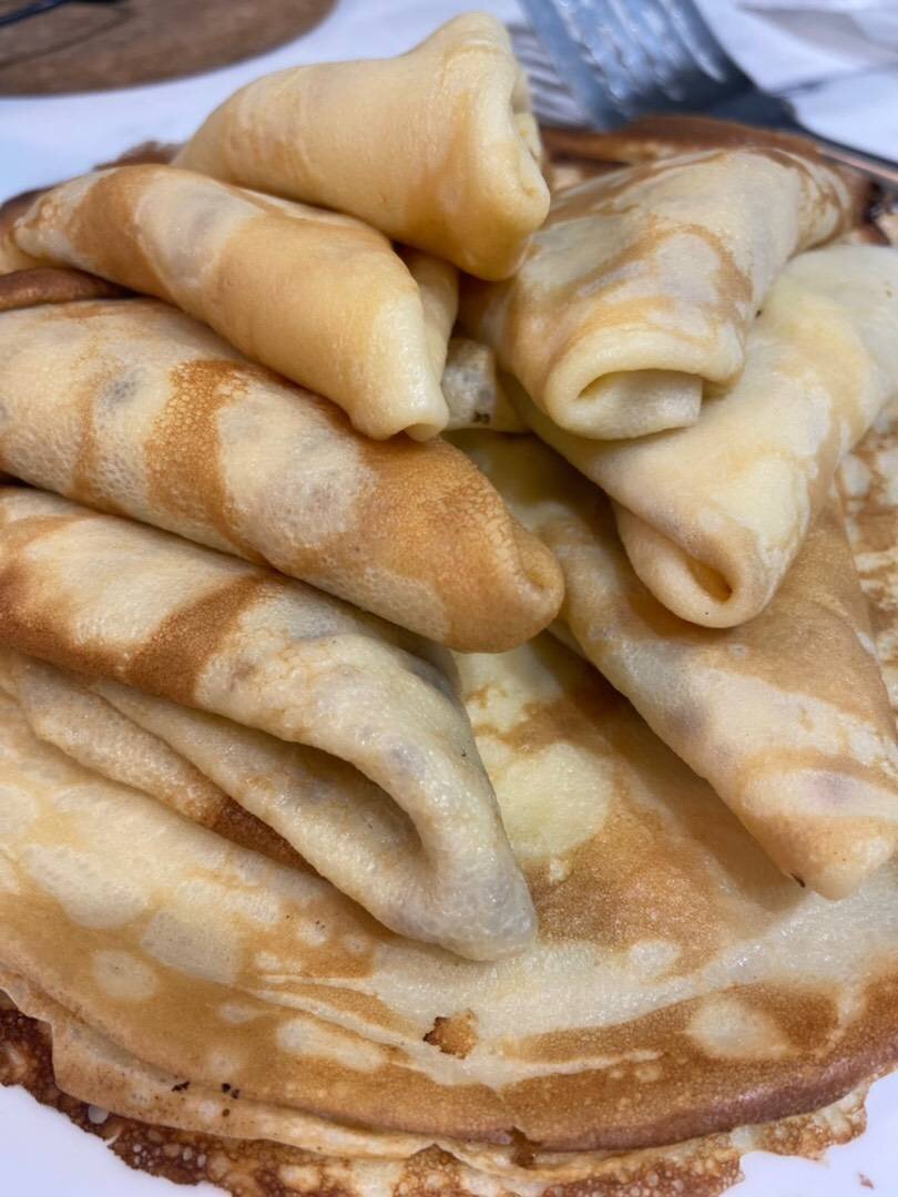 Идеальный рецепт для блинчиков, которые точно не получатся «комом» Ингредиенты: молоко, яйцо, мука, молоко, Масло подсолнечное, сахар, Соль Способ приготовления: 3 яйца взбиваем миксером буквально несколько секунд, добавляем сахар и соль. Добавляем 150 мл. молока (это не всё молоко) и снова миксером. Добавляем 200 г. муки и взбиваем всё миксером до однородной массы. Добавляем оставшееся молоко. Миксером взбиваем и добавляем 2 ст. ложки подсолнечного масла. Перемешиваем. Тесто готово. Ставим сковородку или сразу две разогреваться. Смазываем перед каждой жаркой нового блина маслом слегка. Жарим блин до момента пока не потемнеют края и переворачиваем лопаткой. Каждый блин готовый сразу горячий можно смазывать сливочным маслом, так будет вкуснее. Приятного аппетита🤍