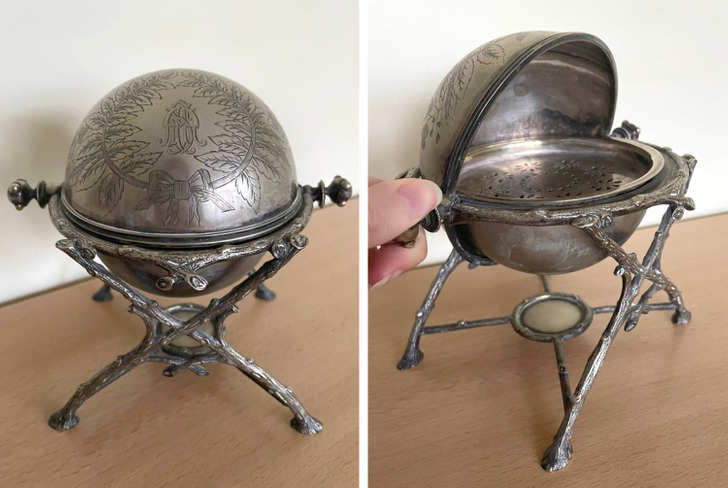 Редко можно встретить человека, который никогда бы не сталкивался с вещами непонятного предназначения. И найти их можно не только на каком-то закрытом производстве или в других подобных местах. Немало интересного и необычного можно найти на самой обычной домашней кухне. Серебряная сфера, которая содержит внутри пластину с отверстиями Это действительно нестандартный предмет — одно из традиционных английских блюд. Его предназначение — служить для сервировки маффинов. Используют так: Нечто около 45 сантиметров в длину Этот предмет имеет край, напоминающий шайбу. Такой участок выполнен из плотного металла. Называется подобное изделие грилем-саламандрой. Его полагается калить на открытом огне, после чего подрумянивать: Другие «таинственные» находки Если устройство сделано из пластика, это еще не значит, что современные люди смогут легко распознать его предназначение. Конкретно эта вещь представляет собой нож для консервных банок, оснащенных кольцами. Надо вогнать крючок под кольцо и затем п