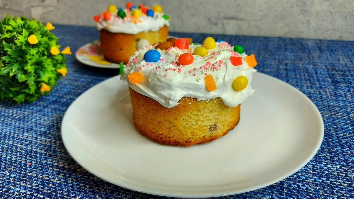Обожаю такие куличи. Они очень ароматные, нежные и безумно вкусные. Простой рецепт, готовить очень легко. Продукты: 🔸Сливочное масло комнатной температуры, соль, сахар взбиваем блендером до пышности. Продолжаем взбивать, добавляя по очереди яйца (до однородности). У меня ушло три яйца. 🔸Отправляем цедру апельсина и сок апельсина 🔸Затем нужно просеять муку с разрыхлителем. Взбиваем массу. 🔸Добавляем изюм (предварительно запарить). Перемешиваем. 🔸Распределяем тесто по формочкам. Тесто как густая сметана, но не переборщите с мукой. Отправляем в разогретую духовку, 180 С 40 - 45 минут. Проверяем шпажкой. Если необходимо, закрываем куличи фольгой и отправляем ещё на несколько минут. Глазурь: Высыпаем в посуду желатин, добавляем 2 ст.л холодной воды. Оставляем на 15 минут. В маленькую кастрюлю 4 ст.л воды и сахар 170 гр. Готовим до растворимости сахара. Снимаем с плиты и добавляем желатин. Взбиваем блендером, добавляем лимонный сок. Взбиваем массу до устойчивых пиков. Украшаем куличи.