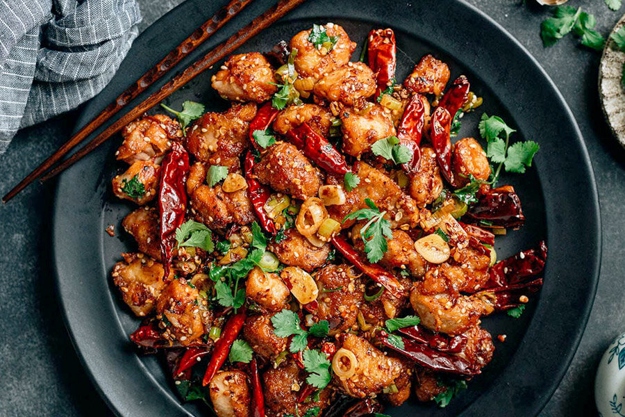 Ингредиенты: 400-450 г – куриных бедрышек без кожи и костей 5 зубчиков – чеснока 5 см – имбиря 4 стрелки – зеленого лука (только белая часть) небольшой пучок кинзы 2 ч.л – сычуаньского перца ¼ стакана – растительного масла маринад 1 ст.л – шаосинского вина 1 ст.л – светлого соевого соуса панировка ¼ стакана – кукурузного крахмала 1 ч.л – молотого сычуаньского перца соль по вкусу смесь специй 1 ст.л – поджаренных семян кунжута 15-20 шт – сушеных чили 2 ст.л – хлопьев чили 1 ч.л – сахара Приготовление: Приятного аппетита! Если вам понравилось, поставьте 👍, чтобы я мог понимать предпочтения участников канала и быть более полезным.