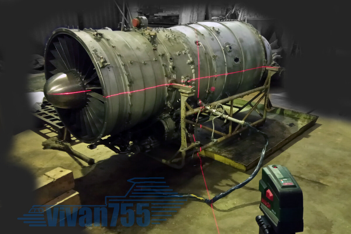 А сейчас мы вовсю делаем сложный разрез двигателя АИ-25, что стоит на Як-40 и Л-39 «Альбатрос». Вот он, уже очищенный от агрегатов, я с помощью лазерного уровня размечаю на корпусах четверти: