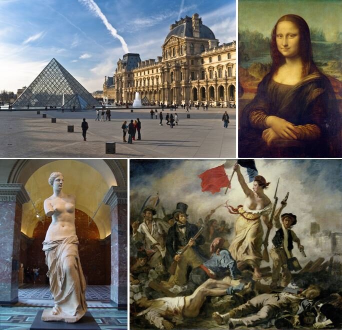 Крепость-дворец Лувр был построен в 1190 году во время правления короля Филиппа-Августа из династии Капетингов. С веками он разрастался, достигнув современных огромных размеров. Лувр гордится многими мировыми шедеврами: портретом Моны Лизы в исполнении Леонардо да Винчи, полотном "Свобода, ведущая народ" кисти Эжена Делакруа, скульптурой Венерой Милосской Антиоха и многими другими.