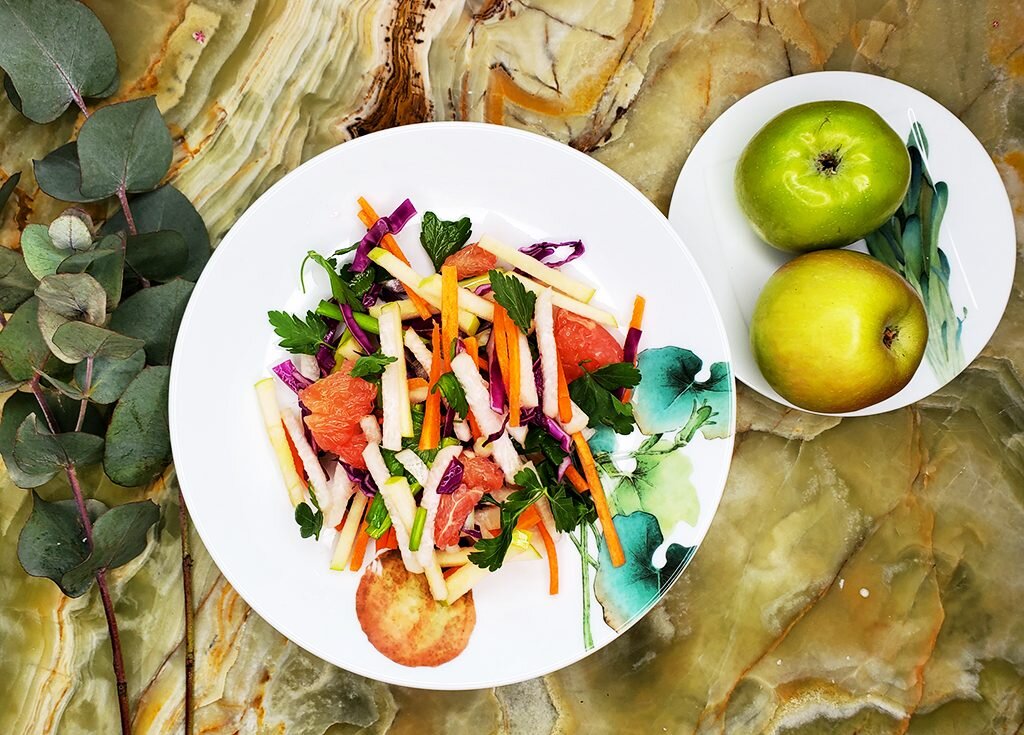 Хрустящий вьетнамский салат из капусты, яблока, грейпфрута и зелени – весна пришла!