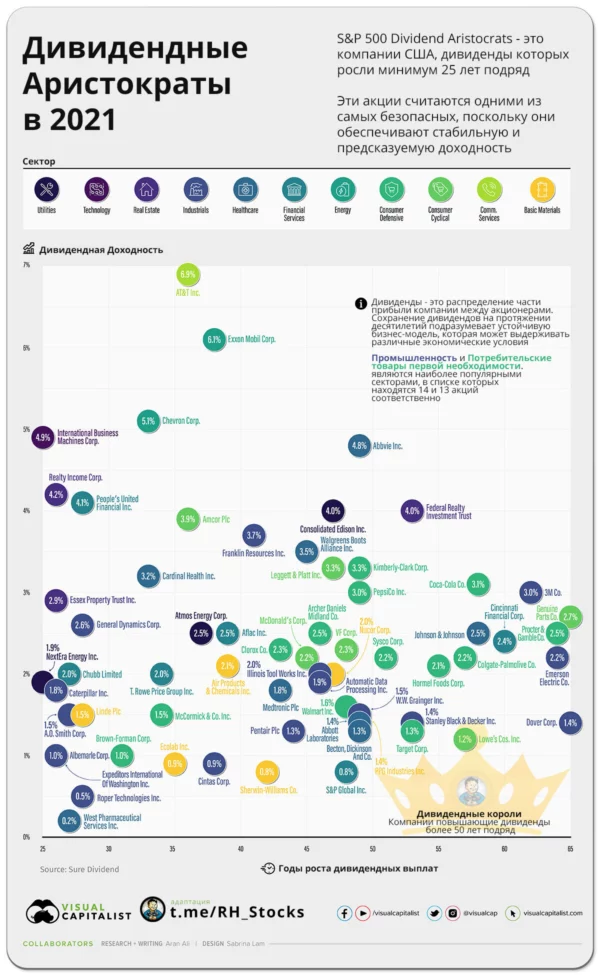🎩👑 Наверняка Вы слышали про такую категорию акций, как дивидендные аристократы, и многие считают, что это компании, которые платят высокие дивиденды, но это не так.