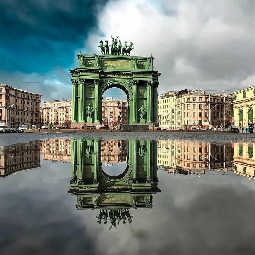 Ещё одна красота нашего города😍 Про эту арку есть маленька история, Если вы верите в такое, то вам понравится) Аттик Нарвских триумфальных ворот украшают скульптуры Гениев Славы. Существует поверье, что ровно в полночь одна из фигур оживает и поднимает руки, приветствуя запоздалого прохожего. В прошлом веке жители пугали привидением детей и старались не выходить на площадь с наступлением темноты. Лично мне хочется верить, что нас оберегают, а не хотят запугать 🤗🤭 Нарвские триумфальные ворота – это ещё и музей. Поднявшись по винтовой лестнице, попадаешь в выставочный зал, который расположен в аттике ворот - филиал Музея городской скульптуры.