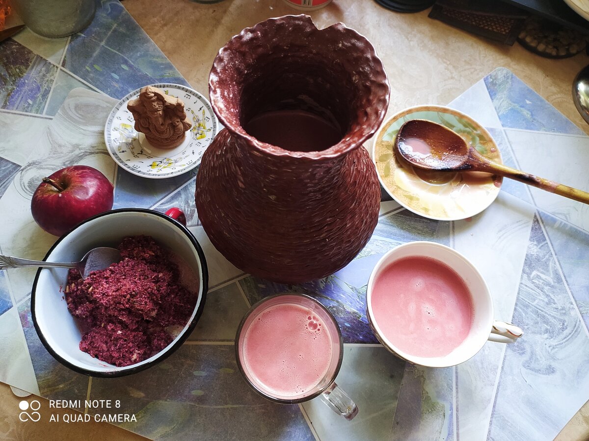 Друзья, как вам обещала, очень простой способ домашнего приготовления веганского "молока" и "кефира". Относительно недавно на прилавках магазинов появился продукт "немолоко". Стоимость литра такого растительного напитка внушительна. Из чего же это делается? Мы не покупаем в магазине такие продукты, а готовим веганское молоко сами дома. Что для этого нужно? Веганское молоко и кефир. Состав: 1. овсяные хлопья - 200 (250) г. 2. вода питьевая 3. свежие или замороженные ягоды или фрукты И никакого сахара, соли, масла и прочих добавок! Способ приготовления: 1. Высыпаем в керамический кувшин (кринку) овсяные хлопья, заливаем его чуть ниже горлышка питьевой водой, накрываем горлышко и оставляем на 6-8 часов в комнатной температуре. 2. Через 6-8 часов в блендер заливаем всё содержимое кувшина и хорошенько перекручиваем. 3. Пропускаем через сито получившееся и отбрасываем оставшийся в сите овсяный жмых: его можно в будущем добавить в печенье, пирог, оладьи или суп. 4. Засыпаем в блендер неск