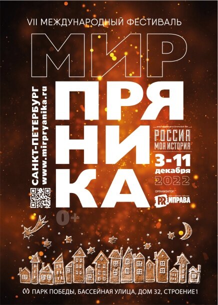 Дорогу осилит идущий. Шесть лет назад в Петербурге пряничные мастера решили, что у ПРЯНИКА должен быть свой фестиваль и не стали ждать у моря погоды. Сегодня, в честь Дня международного пряника, рады сообщить, что VII Международный фестиваль пряничного искусства “Мир пряника” пройдёт в Санкт-Петербурге со 3 по 11 декабря 2022 года. Место проведения: Мультимедийный исторический парк "Россия - моя история Фестиваль приурочен к году народного искусства и нематериального культурного наследия народов России.