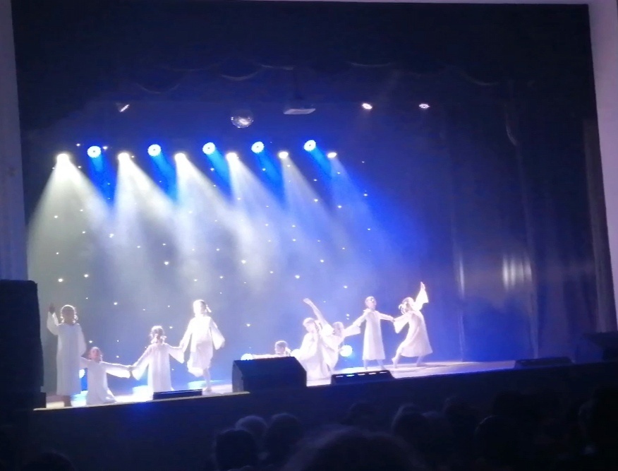 В субботу, 23 апреля, мы оттанцевали ещё один концерт. Третий по счету. Это третий бонус к личному опыту моей 7летней дочери. Это еще одна звездочка на доске её почёта. Сейчас уже вечер. Мы давно приехали домой. Чуть отдохнули и даже сходили погуляли на детской площадке. Дети уставшие легли спать. День подошёл к завершению. Концерт получился душевным. Это именно самое подходящее слово. Номер дочери называется "Колыбельная". Сама музыкальная композиция очень нежная, трогательная, она сразу западает в душу. Хотя дочери она сначала не понравилась. Но спустя время мы её даже закачали для личного прослушивания. Были сшиты прекрасные костюмы: тонкие белые платья-сорочки, спереди вставка из кружевной ткани. На волосы мы завязывали белые ленты в виде бантов. Человек с циничным взглядом мог бы сказать, что танцовщицы выглядят как Кентервильские привидения. Но сценический образ очень хорошо подходит к песне и движениям. В этот раз на сцене было организовано красивое освещение. Софиты светили яр