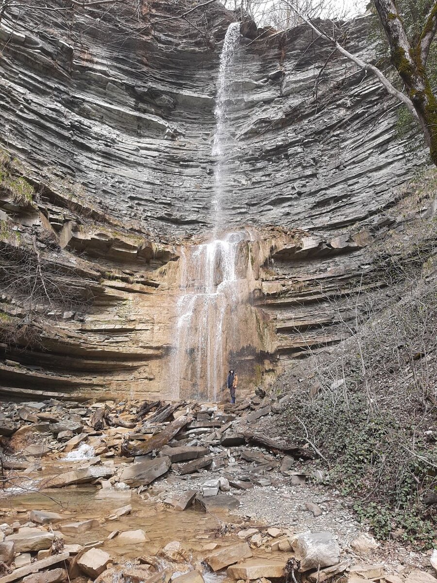прохаскин водопад ⛰ О чудном и необычном водопаде в окрестностях Тешебса я слышала давно,но как то было недосуг. И вот пришло его время. Весна, март,водички в водопадах мноооого- самое то,что нужно для максимума впечатлений! Просто идти на водопад казалось скучной затеей,потому решили пройти маршрут в 20км :Тешебс-балка Прохаскина- ручей Подколзин Яр-грот Сталактитовый- Тешебс. Итак,вкусный маршрут готов,выезжаем. Ночь,улица,фонарь...Нет,не так. Утро,пробки, Краснодар-все как обычно. В 9:30 кое-как заезжаем в Тешебс. На окраине оставляем машину,одеваем резиновые сапоги и бодро двигаем в сторону балки Прохаскина. Пара бродов и разбитая дорога в начале пути и добро пожаловать в весеннюю сказку! Хорошо набитая тропа по правому (по течению)берегу ручью вела по красивой ,непривычно широкой щели. В изобилии встречались пролески, фиалки,зеленющий мох. Через пару километров начали попадаться кривенькие сосны. Тропа привела в каньон ручья. Все,дальше идем по руслу -зря что ли сапоги над