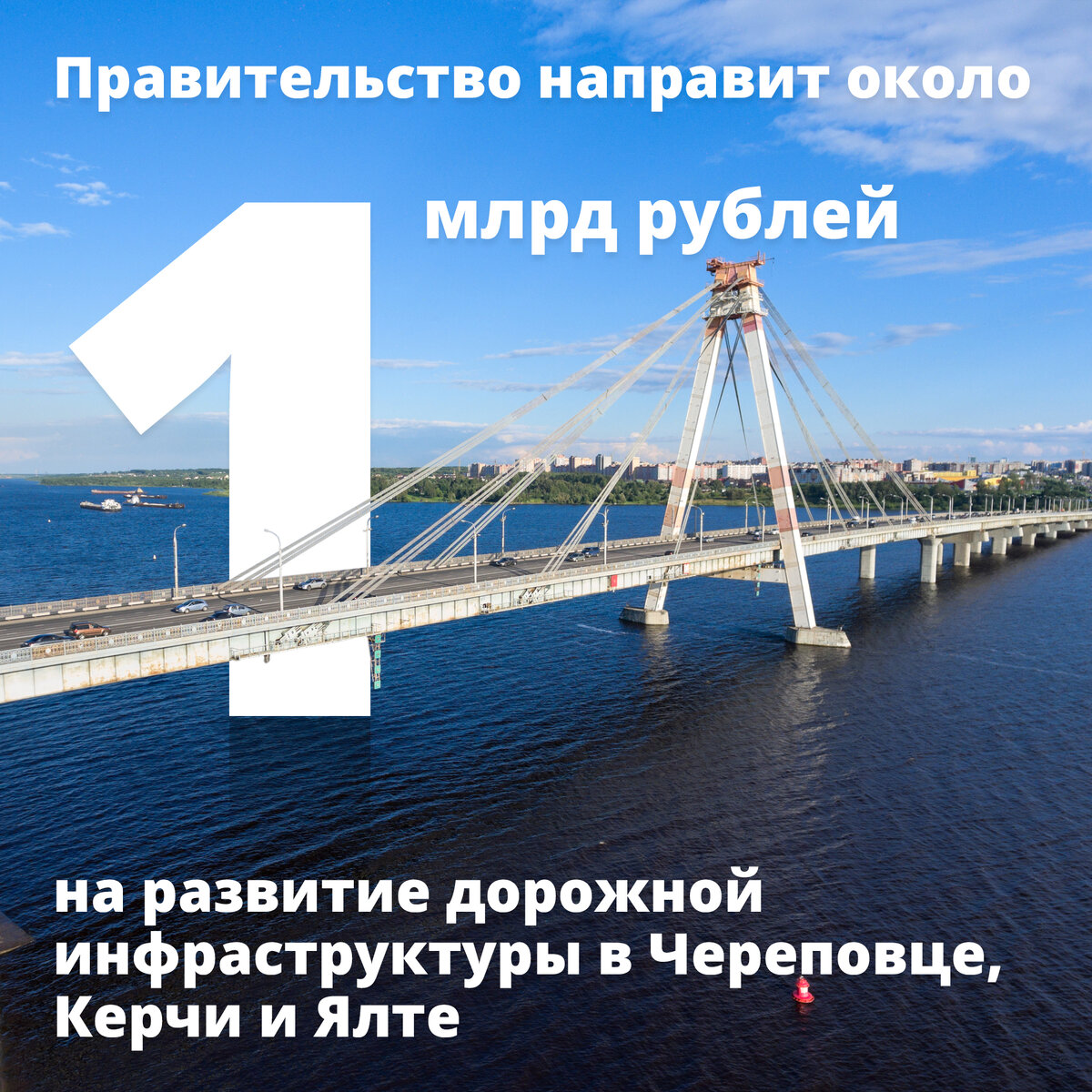 🚗Правительство продолжает финансировать развитие дорожной инфраструктуры в регионах. На эти цели из резервного фонда будет выделено 934 млн рублей. 🛣200 млн рублей направят на восстановление региональных и межмуниципальных дорог в Керчи и Ялте, пострадавших во время паводка в 2021 году. 🌉727 млн рублей получит Вологодская область для завершения строительства в Череповце моста через реку Шексну. Запуск движения по нему намечен на август 2022 года. Реализация проекта позволит завершить создание городского транспортного кольца и оптимизировать движение в центре.