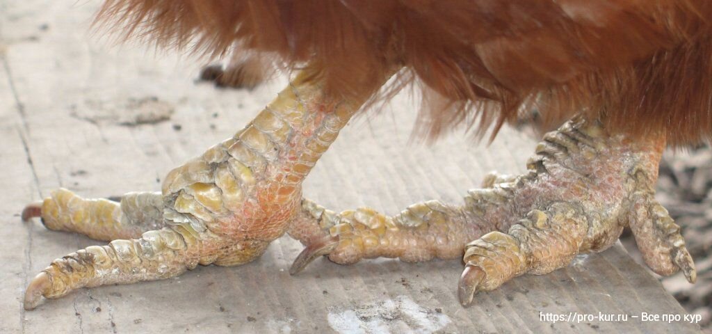 Наросты на ногах у кур из-за чесотки