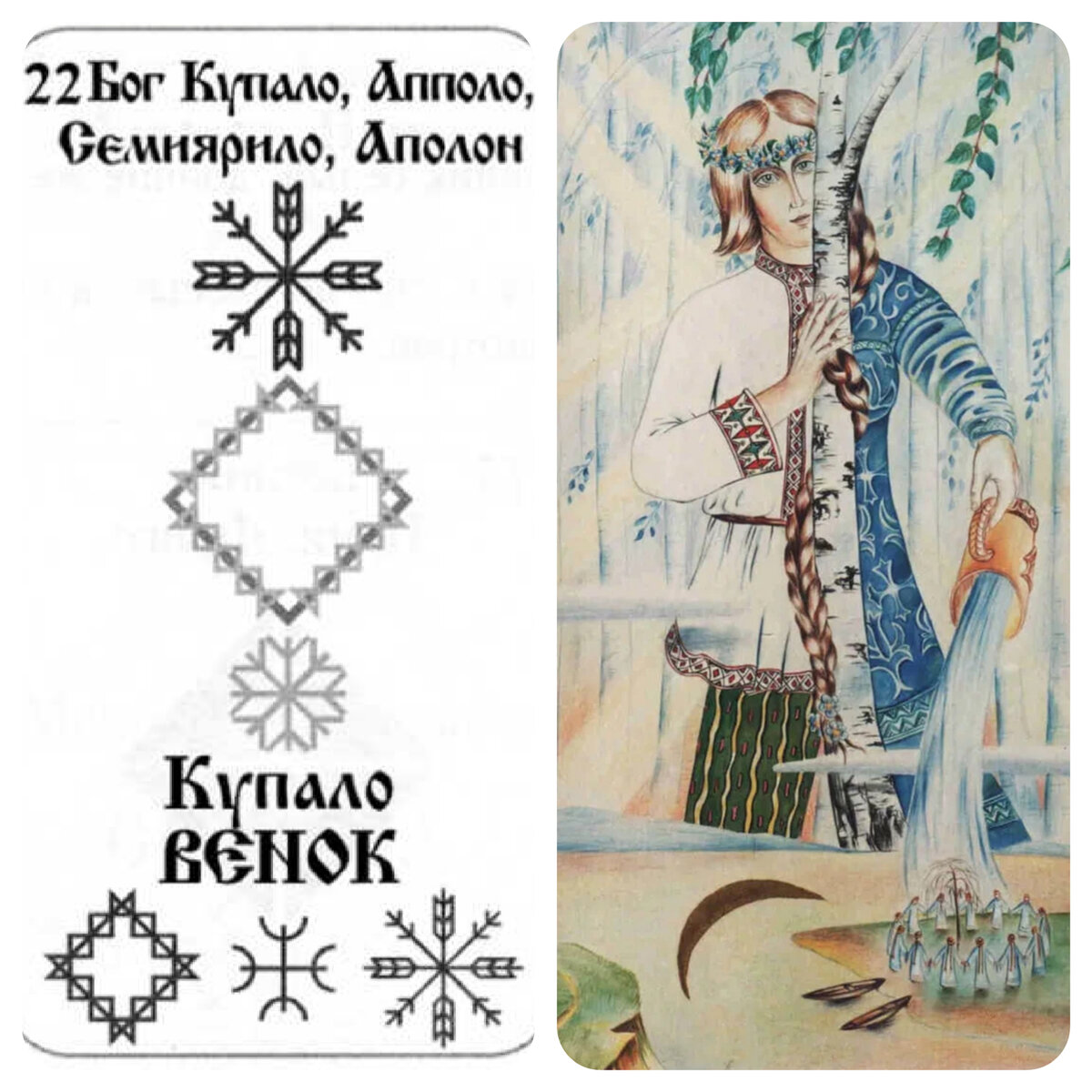 По расчёту сегодня руна Купало. Один из вариантов руны можно наносить на запястье маркером ровно на сутки. Даёт покровительство и защиту наших родных Богов, также позволяет прочувствовать свойства руны на себе. Руну и орнамент Бога Купалы использовали девушки при обращениях к Высшим силам для того, чтобы выйти замуж за хорошего человека, а замужние женщины - для укрепления семейного союза. В традиции перед Купальской ночью пара молодых ходила получать благословение у своих родителей. Потом, в ходе обряда, девушка сама венчала юношу, и пара закрепляла свой союз благословениями волхва (жреца), получала от него наставления. На капище проходил обряд венчания обменом венками. Купальский венок на голове человека означает неразлучную любовь и единство безграничной Божественной пары в её изначальной универсальной форме кольца на верховном столбе, а цветы венка служили символом вселенских восьмистолбовых звёздочек, находящихся в кольце Великой Богини. До восхода солнца, ранним утром делали