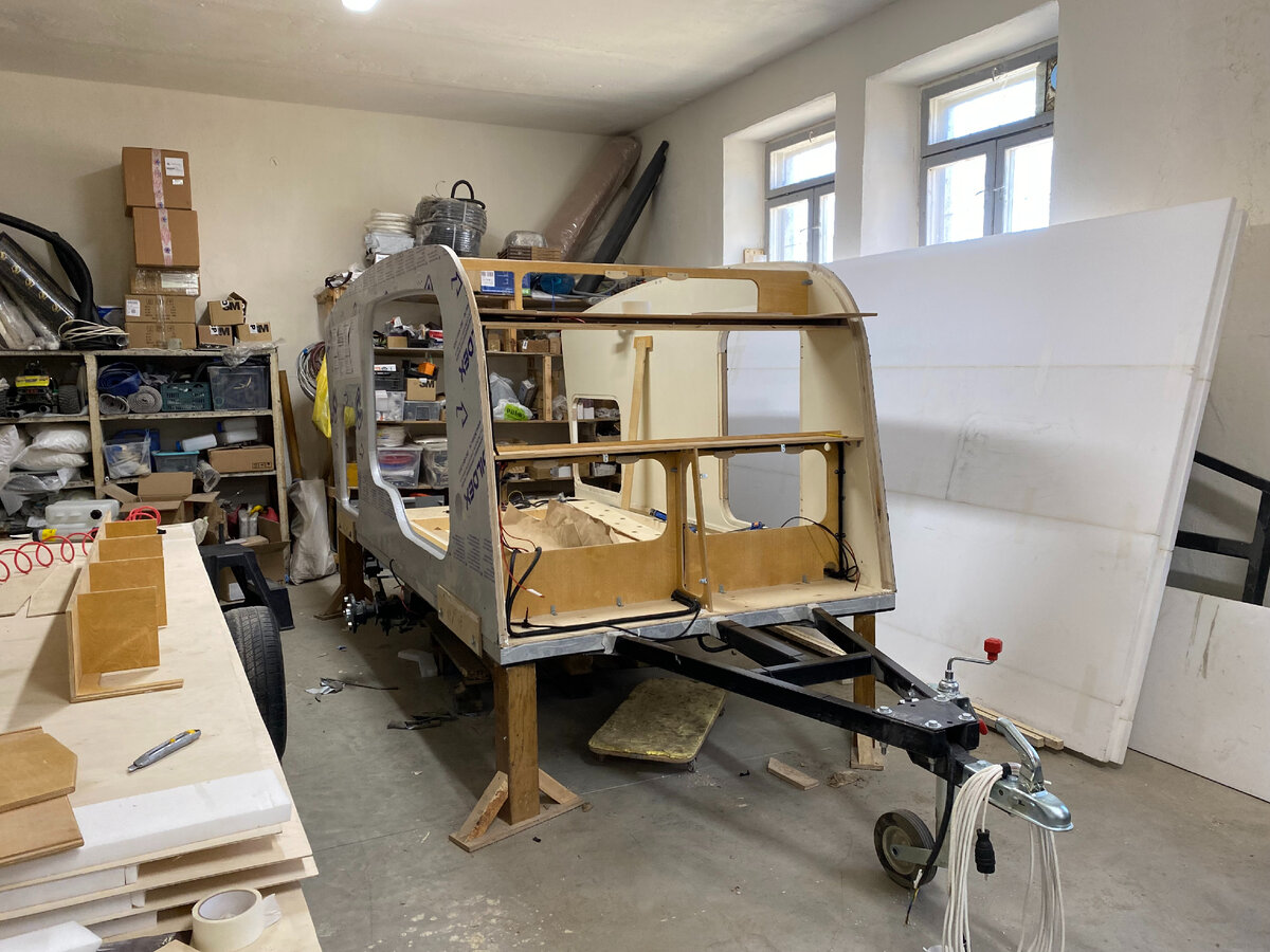 Недавно мы посетили мастерскую, где вручную собирают дома на колесах. Прицепы-капли делают для российских дорог, высоту клиренса можно увеличить от 320 до 630 мм. Для обзора выбрали модель с пробегом 30 000 км по России. Внедорожным прицепом владеет семейная пара. Они сдают прицеп в аренду, когда не путешествуют. Прицеп-капля Чир Специально разработанное шасси предназначено для обычных, грунтовых, горных и лесных дорог. Для управления прицепом достаточно прав категории В. Покрытие из стеклопластика защищает от града и других повреждений. На дышло установлен рундук объемом 320 л. Здесь хранится канистра с топливом, аккумулятор, электрика, поместится кемпинговый туалет. С внешних боков прицепа есть ящики для хранения обуви и оборудования. Снаружи крепится кронштейн для запасного колеса. Здесь же шкафчик с газовым бойлером и внешним душем. Сзади разъем для фаркопа, светодиодные фонари, габаритные огни, опорные ноги, камера заднего вида с управлением по Wi-Fi. По правому борту находится д