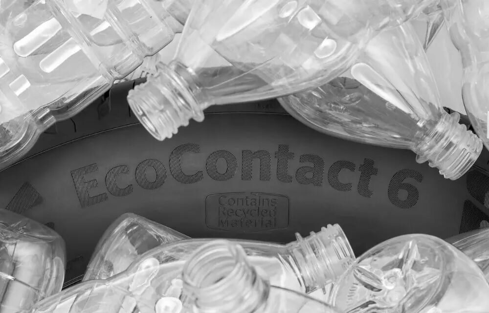 Немецкая компания Continental объявила о первом в мире запуске массового производства шин для легковых автомобилей с использованием переработанного полиэтилентерефталата (ПЭТФ). Компания разработала инновационную технологию ContiRe.Tex, позволяющую использовать в производстве шин полиэфирную нить, полученную из переработанных пластиковых ПЭТ-бутылок, которая полностью заменяет обычный полиэстер в каркасе шины. Такие шины на 40% легче обычных и обеспечивают на 25% меньшее сопротивление качению, чем самые эффективные серийные образцы. Кроме того, конструкция концептуальной покрышки подразумевает возможность неоднократной замены протектора — это увеличивает срок службы других компонентов покрышки. На долю вторично переработанных материалов приходится 17% конструкции шины. Сначала собранные бутылки сортируются и механически очищаются, затем измельчаются, а далее перерабатываются в гранулят и, наконец, в полиэфирную пряжу. На комплект из четырех покрышек идет примерно 60 бутылок.