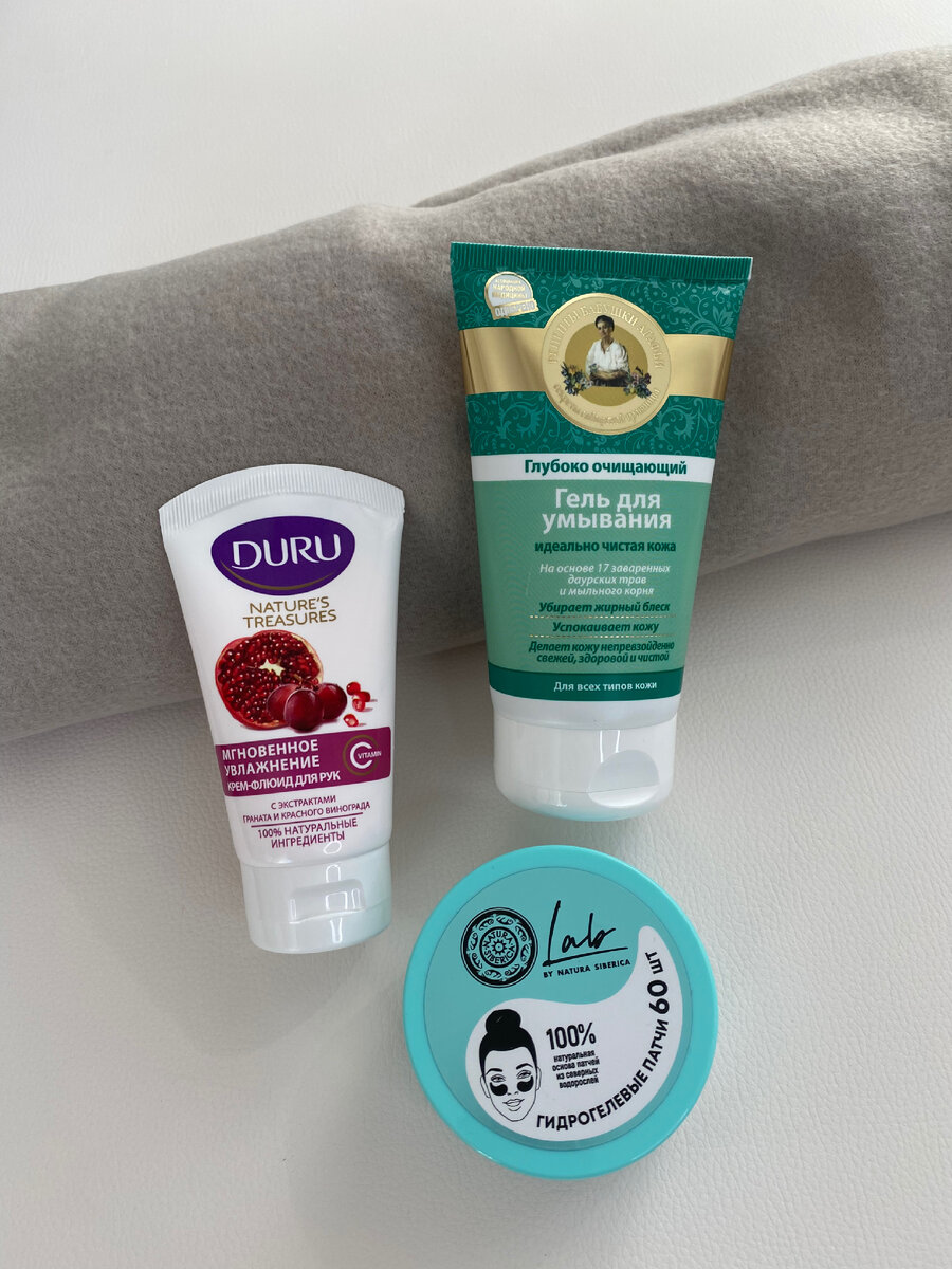 Добрый день! Всех поздравляю с праздником!!! Праздник пришёл неожиданно, я оказалась не готова)) куличей не напекла и яйца не покрасила)) Пришлось с утра заглянуть в ЛЕНТУ прикупить куличей и уксус ( для красителей нужен) и конечно не прошла мимо отдела с косметическими средствами, покажу что прикупила… Покупок не много, но самое нужное. у меня закончился гель для умывания, взяла Рецепты бабушки Агафьи, он был по акции, цена за 150 мл. 109.99 руб. Я в машине всегда имею крем для рук и гигиеническую помаду. Крем взяла тоже первый раз, запах приятный, текстура нежная, цена за 75 мл. 69.99 руб. И конечно патчи под глаза, уже привыкла и обойтись без них не могу)) Цена за 60 штук, 368.10 рублей это очень бюджетно, если учесть что рядом стояли патчи дороже 1000 !!! Такие я уже беру второй раз, нормально справляются со своей задачей!! По пути на кассу зашла в отдел с подушками и одеялами, взяла там флюсовый пледик за 299 рублей, мне очень понравился цвет «кофе с молоком» . Размер 100* 1