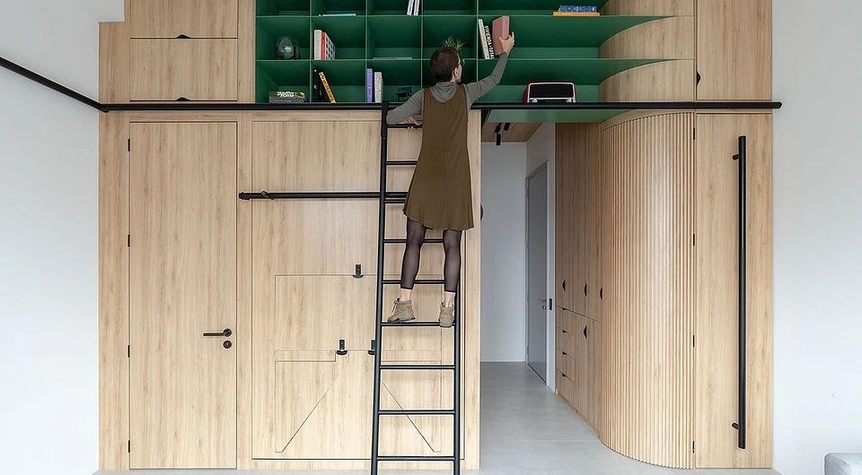 Студия 27 кв.м, где всю мебель заменил многофункциональный шкаф. Фото оригинальной квартиры