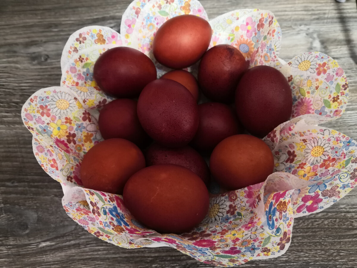 Утро вчера началось просто великолепно - с маминых пирожков и крашеных яиц. Я с детства очень люблю Пасху. Мама всегда делала для меня "кукушку". Это как Дед Мороз, только кукушка приносит крашеное яичко ребенку под подушку в Пасху. Сколько раз я пыталась маму подловить! И все яйца в доме пересчитывала, и за покраской следила, и как-то попросила у кукушки два яйца (думая, что если мама заготовила заранее, то еще одно не сможет найти), но кукушка принесла два. Ну как тут не поверить в волшебство? Кукушку я любила и всегда ждала. И хоть я стала уже взрослой тетей, любить этот ритуал не перестала, потому что его перенял Миша. Теперь он моя кукушка)) Но в мастерстве конечно главной кукушке уступает. Как-то пару лет назад, когда мы жили еще в прошлом доме, он красил яичко в шелухе на печке в бане. План был отличный, конспирация великолепная, ведь я никогда не следила, как он топит баню. Но тут кое-что пошло не так (Ахаха! Простите, я даже думать об этом без смеха не могу!😀) . Он вынес кас