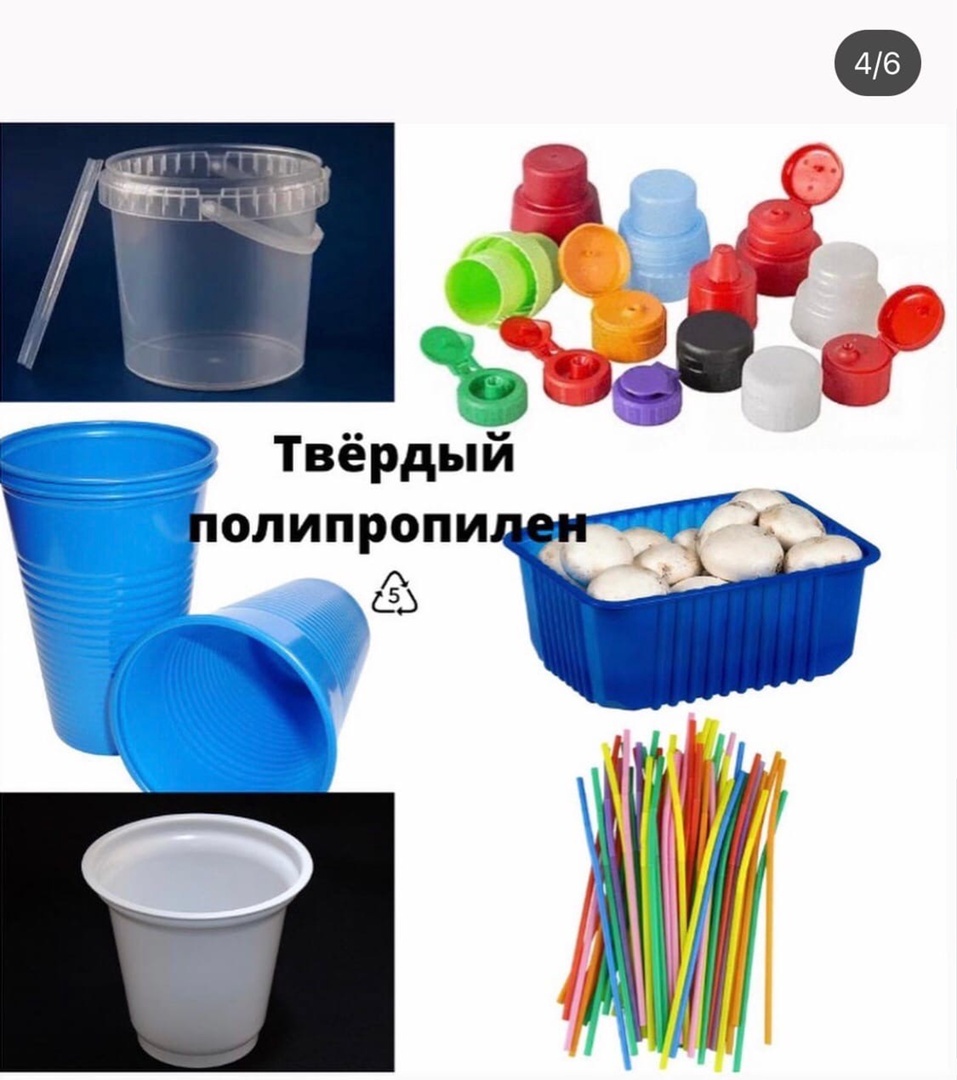 Это могут быть стаканы из под сметаны, йогуртов; ведёрки из под соленьев и квашеной капусты, майонезов, мороженого и тд.; контейнеры из под грибов и овощей; крышки от бутылок бытовой химии; тазы, детские ванночки, ведра; одноразовая посуда; пластиковые трубочки/соломинки от соков и других напитков; цветочные кашпо; баночки из под косметики; упаковка для линз; капсулы от шоколадных яиц; шприцы; некоторые детские игрушки; бутылки из под сиропа и кетчупа; детали химической аппаратуры; нетканые материалы; лотки в холодильниках; многоразовая пластиковая посуда; пищевые многоразовые контейнеры и тд. Так что если у вас, например, треснул тазик )), как у меня недавно, его тоже можно сдать в переработку. Мягкий полипропилен
