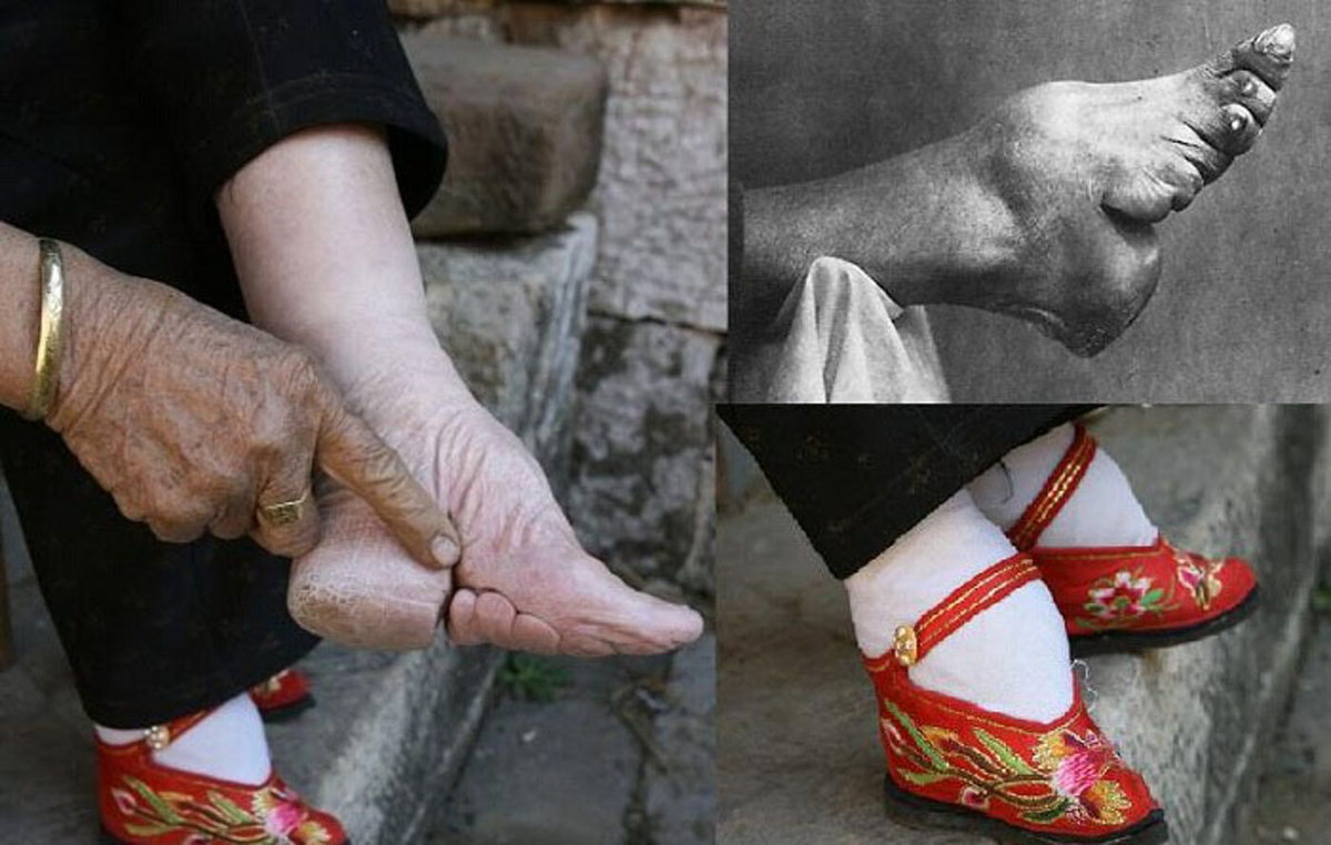 Ноги-лотосы В 10-11 столетиях в Китае бинтование ног считалось показателем красоты и социального статуса женщины. Некоторые девушки даже использовали это в качестве уловки, чтобы выйти замуж за мужчину более высокого социального статуса. Эта процедура очень болезненная, так как девушкам ломали переднюю часть стопы и очень туго перебинтовывали. Эталоном считалась нога, длина которой не превышала 7 сантиметров - ее называли "золотой лотос". Ступня длиной в 10 сантиметров носила название «серебряный лотос», а больше десяти — «железный лотос». В Китае до сих пор есть пожилые женщины, которые бинтуют ноги. Хирургические повязки Иран называют мировой столицей ринопластики из-за большого количества спроса на данную процедуру. Прямой нос - это не только красота, но и особый социальный статус в обществе. Иранцев не останавливает даже высокая цена. Ежегодно 200 тыс. человек проходят хирургическое вмешательство. В этой стране модно даже просто так ходить с хирургической повязкой, чтобы уверить ок