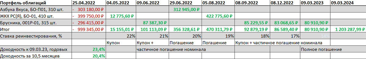 В апреле 2022 года депозит в банке на год может принести максимум 15% годовых. Что может предложить рынок облигаций? Облигации – это долговые ценные бумаги. Покупая облигацию, вы даёте деньги в долг компании, которая эти облигации выпустила. Компания возвращает долг в объявленную дату с процентами в виде периодических купонных платежей. По сути, депозит очень похож на покупку облигаций, только в случае депозита деньги даются в долг банку. Такие отношения регулируются по-другому. В этом тексте мы рассмотрим конкретные примеры, плюсы и минусы каждого варианта инвестирования. ДЕПОЗИТ, 15% годовых (любой банк) Плюсы: весь доход не облагается налогом в 2021-2022 годах; застрахован Агентством по страхованию вкладов в пределах 1,4 млн. рублей в каждом банке; понятные условия входа и выхода. Минусы: невысокая доходность; досрочный выход возможен только с потерей процентов. ПОРТФЕЛЬ ОБЛИГАЦИЙ, 23% годовых (Супермаркет Азбука Вкуса, Государственное унитарное предприятие ЖКХ Якутии, застройщик ж